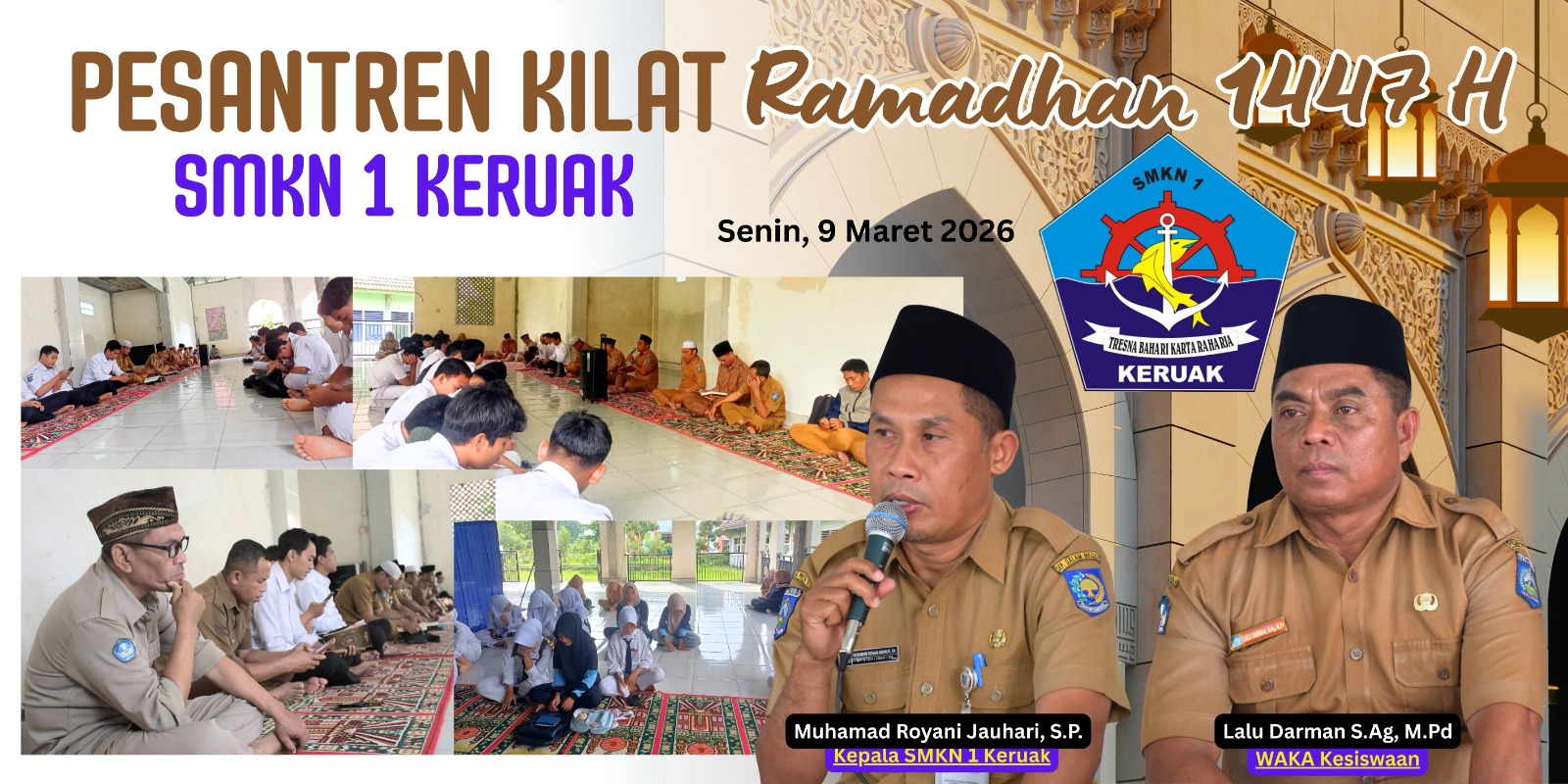 SMKN1KERUAK.SCH.ID.Pada hari Senin, 9 Maret 2026, telah dilaksanakan kegiatan Pesantren Kilat yang bertempat di SMKN 1 Keruak. Kegiatan ini merupakan bagian dari program pembinaan karakter dan peningkatan keimanan serta ketakwaan peserta didik, khususnya dalam momentum kegiatan keagamaan di sekolah.